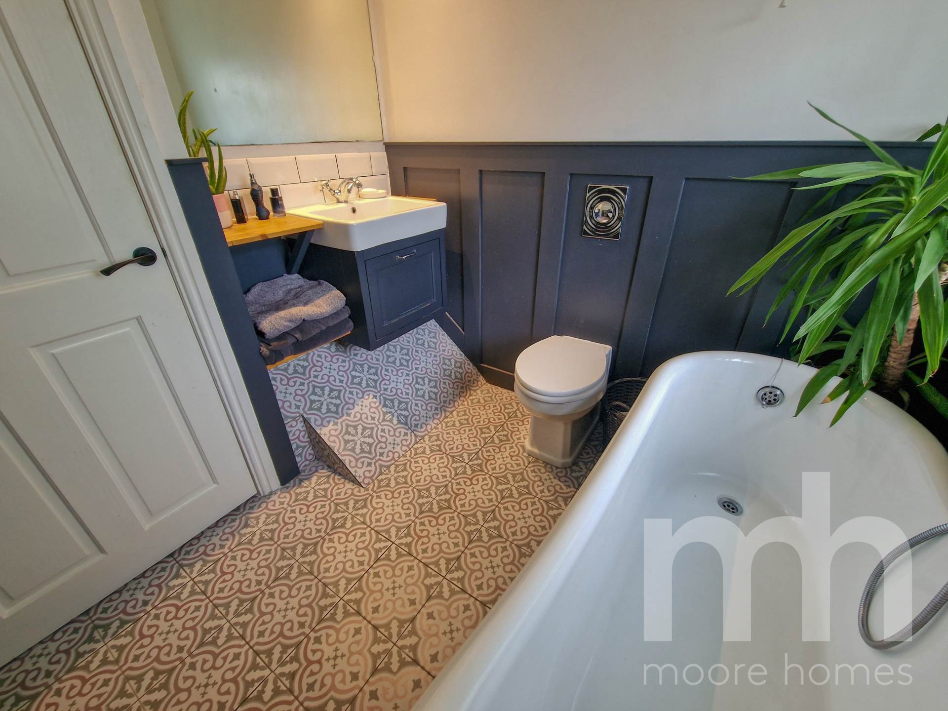 At first floor, the landing leads on to the four bedrooms, including the feature master bedroom with vaulted ceiling having velux style windows to the front and rear elevations, this is a really super signature room. There's also a gorgeous family bathroom, set to the front with stylish suite including freestanding slipper bath and also with part panelled walls, a really super family bathroom.