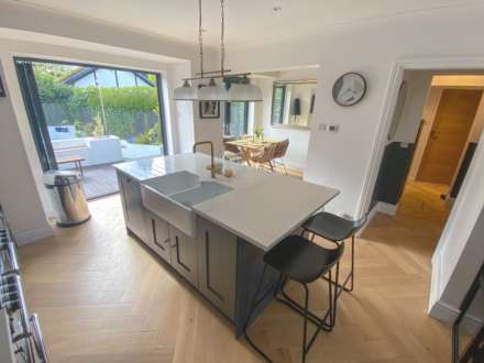 - The beautifully presented accommodation comprises; a covered porch area opening to the pleasant entrance hall with staircase leading up to the first floor with spindled balustrade and light oak flooring which runs through a great deal of the ground floor. The luxury dining kitchen is a really super principle room on the ground floor with a combination of double glazed double doors and bi-fold doors opening to the decked patio and rear garden, This is a really pleasant room, the kitchen suite is in a contemporary deep grey with contrasting white tops with the island unit having twin base Belfast style sink unit and permanent hot water tap, there are an extensive range of built in units. Glazed double doors open to the attractive living room set with bay window to the front elevation and there is a further separate sitting room also set at the front of the property. The ground floor shower room and separate Wc with modern stylish suites are both set off the entrance hallway.
